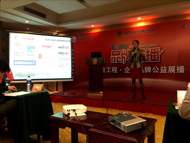 采访结束后,会议正式开始。来自CCTV企业品牌公益展播栏目组的推介人详细地介绍了此次会议的情况和目的:“大音工程·企业品牌公益展播”活动是共青团中央两大直属单位团中央网络影视中心、中国光华科技基金会联合发起的大型公益类活动,由中国光华科技基金会搭建公益平台,募集包括中央电视台,中国青年网等中央主流媒体资源,引导和支持中小企业通过媒体方式践行媒体责任,传递企业在经济实践中恪守的公益理念等企业文化,企业通过参加本次活动较好地提升了企业品牌知名度和公信力。