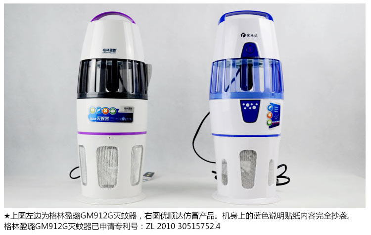 第一品牌,目前在线上、线下占据了重要的市场份额,格林盈璐品牌也逐渐被消费者所熟知,其高端市场的定位及高质量的产品得到了诸多用户的认可。也正是看到格林盈璐产品广受欢迎,市场上仿冒格林盈璐灭蚊器的企业层出不穷,其外形或品名相似,但性能却相距甚远,严重影响到用户的使用。近日,格林盈璐电器在电子商务平台展开全面整治清理活动,并联合天猫及相关执法部门打击侵权产品。在此,也提醒广大消费者认清格林盈璐®GREENYELLOW®品牌。